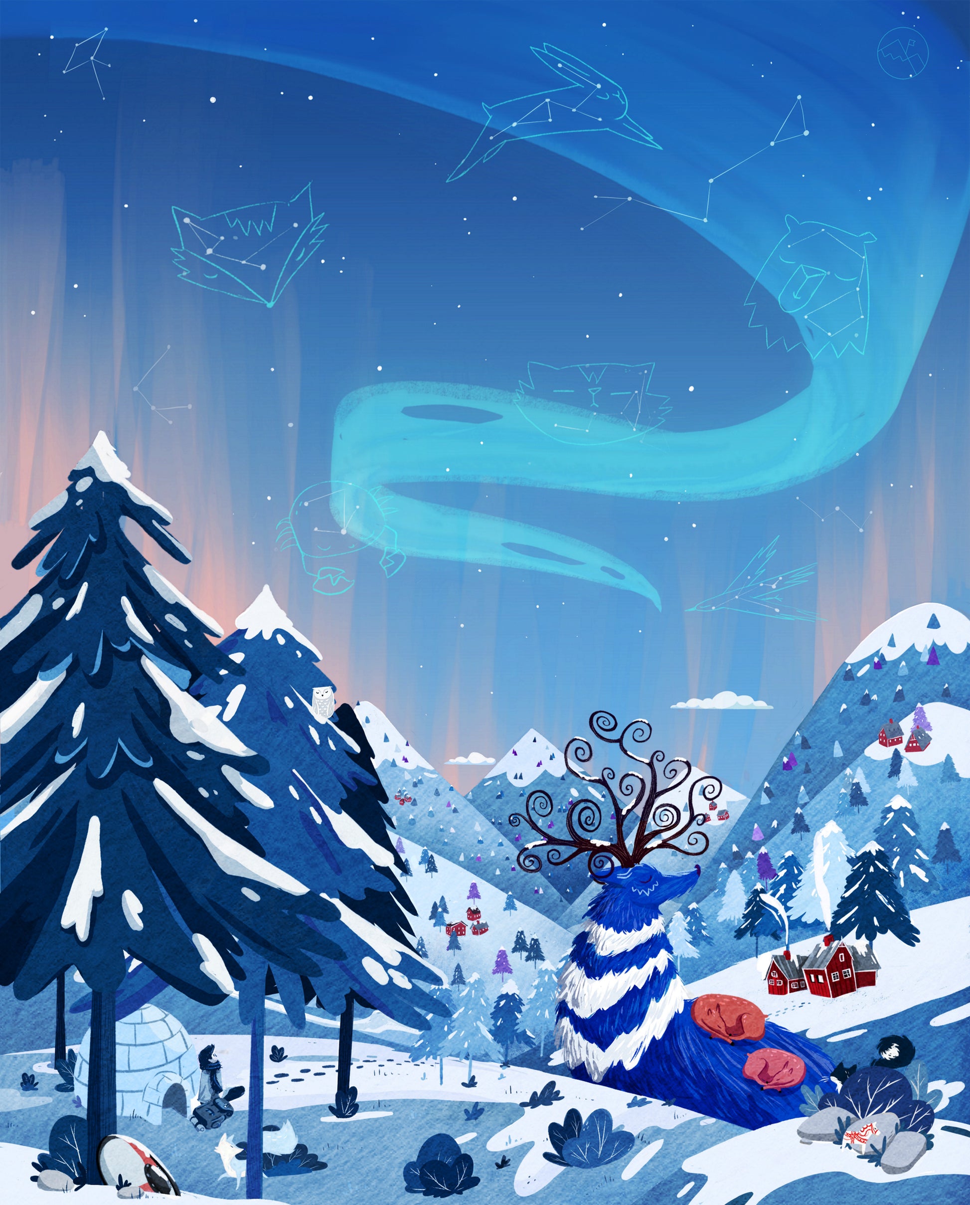 This wonderful winter art print features the amazing auroras of Northern Sweden visited by Alistair and Purna in November 2016. Available in multiple sizes, this whimsical art print comes ready for you to frame and hang in your favorite spot.