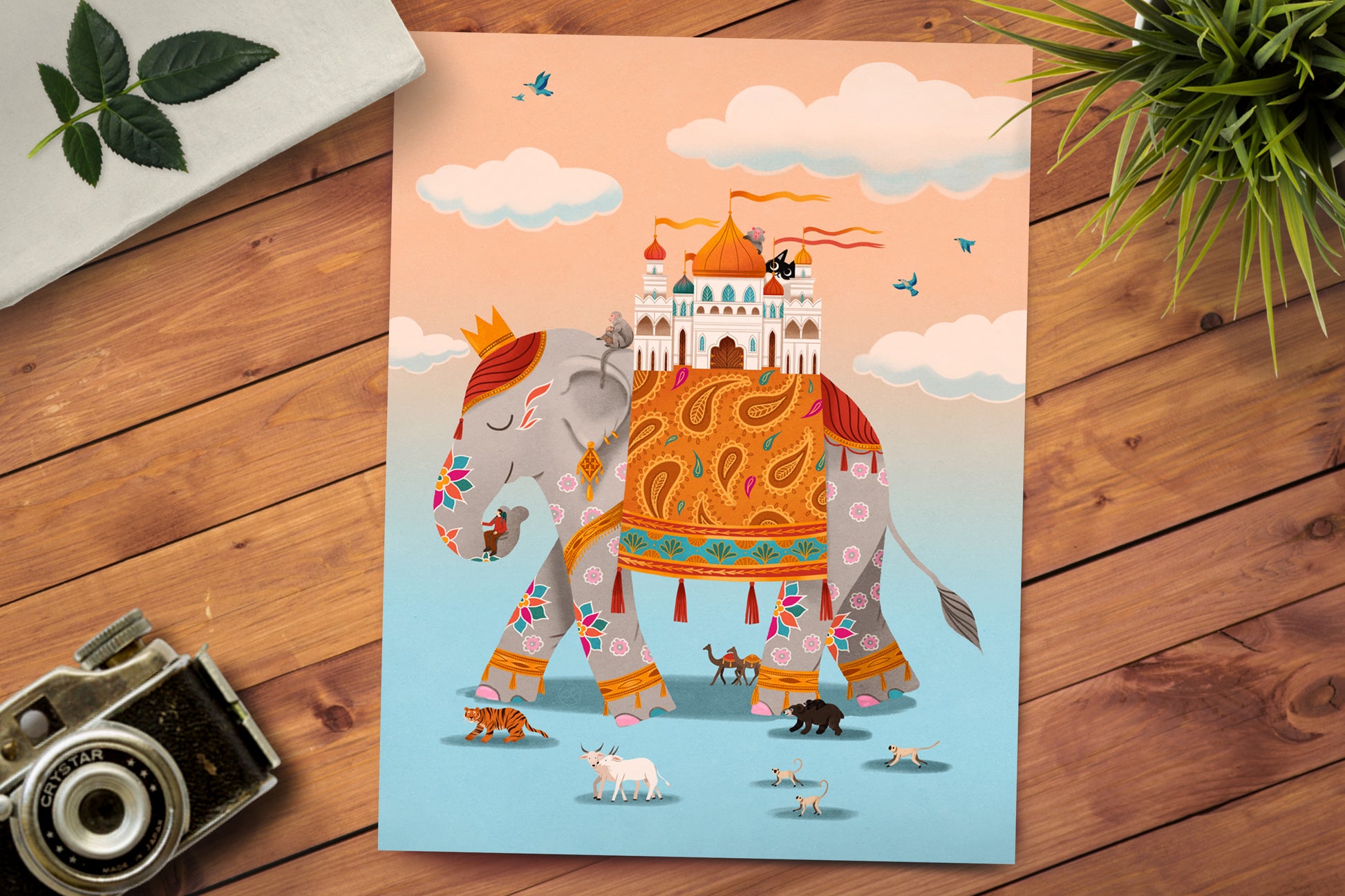 This fantasy print showcases an elegant elephant discovered by Alistair and Purna in India in May 2013. Available in multiple sizes, this whimsical art print comes ready for you to frame and hang in your favorite spot.