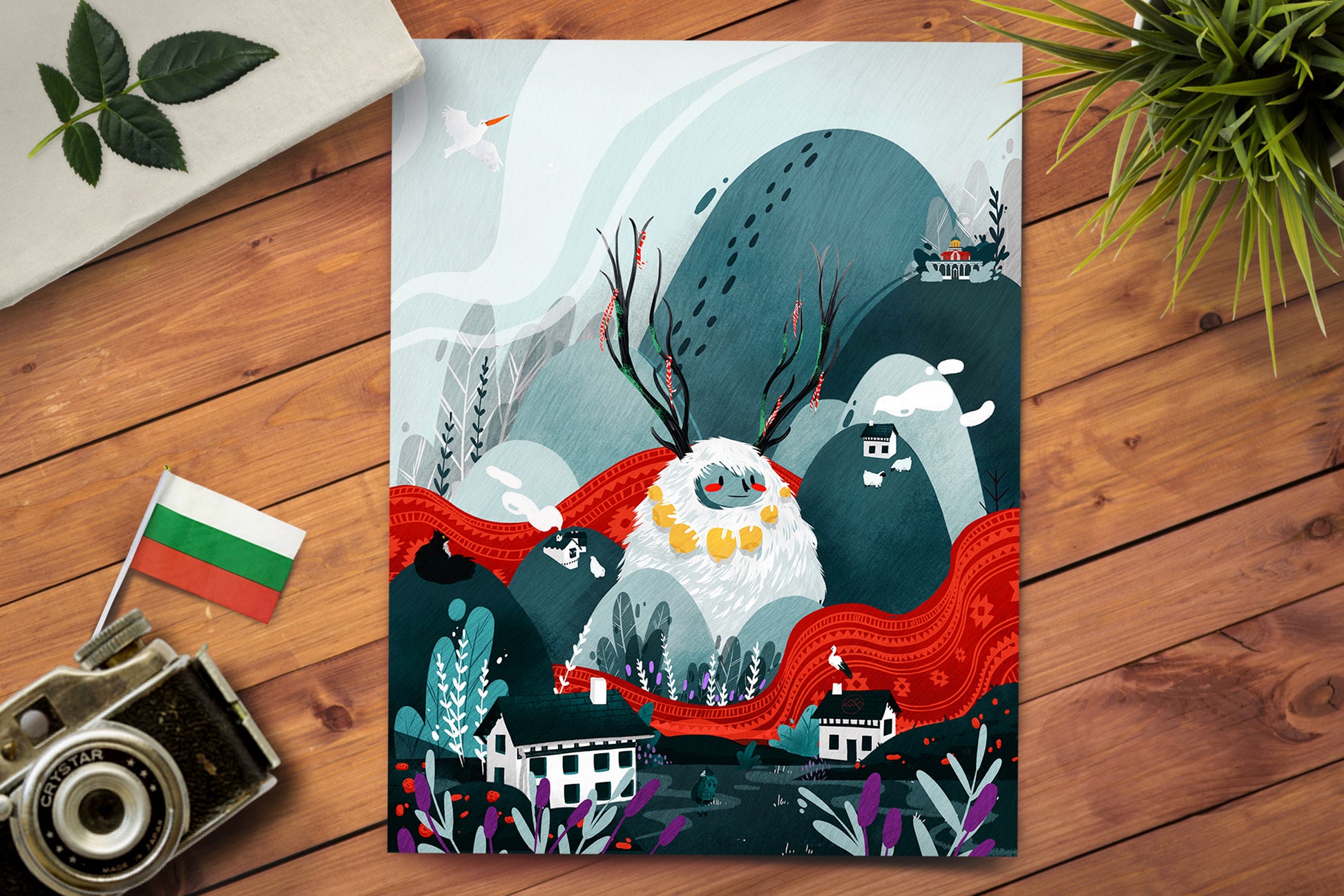 This fun print features the magical rolling hills of Bulgaria (and a somewhat hidden friend) visited by Alistair and Purna in October 2017. Available in multiple sizes, this whimsical art print comes ready for you to frame and hang in your favorite spot.