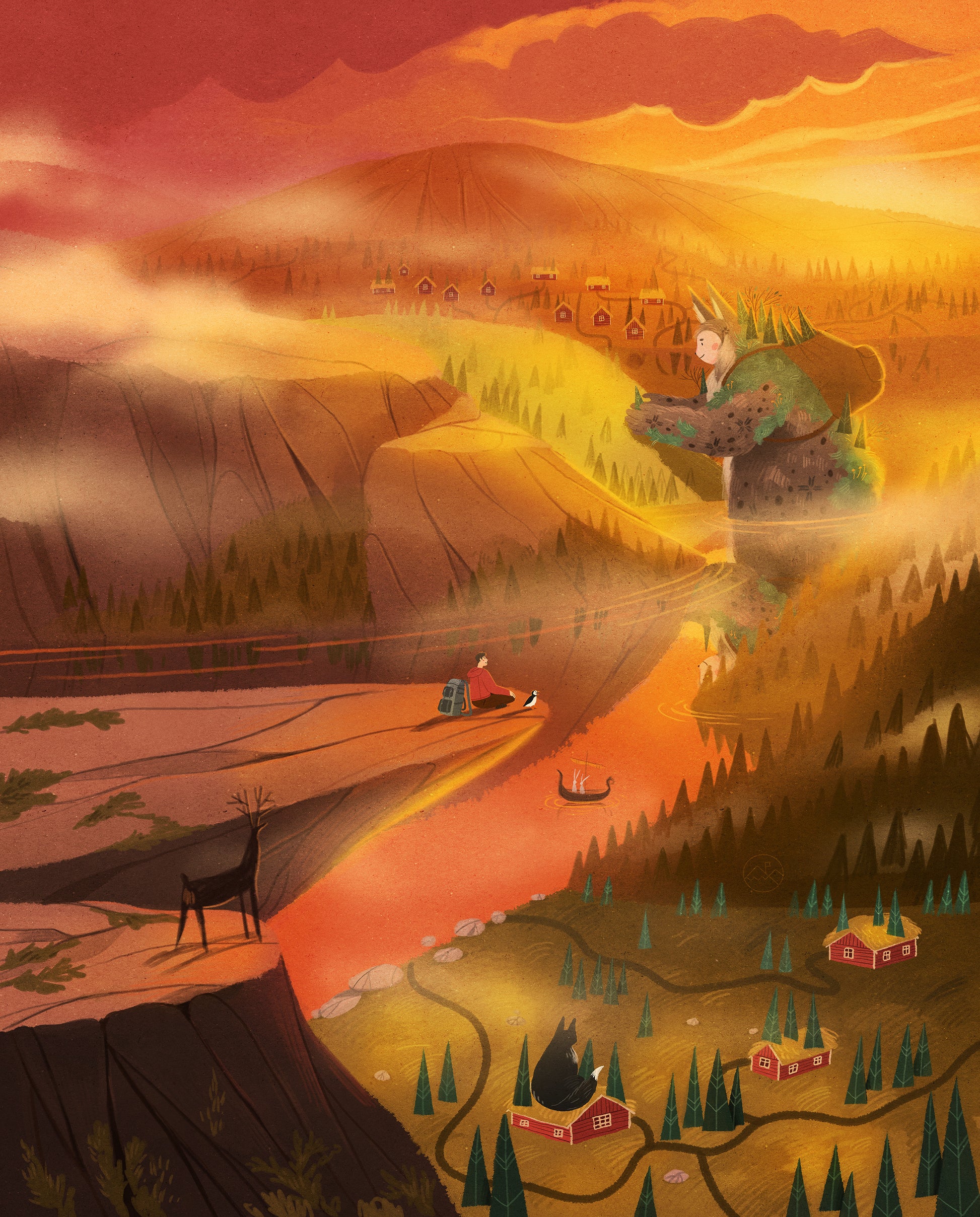 This Nordic art print showcases a beautiful sunrise over the magical rolling hills of Southern Norway visited by Alistair and Purna in July 2017. Available in multiple sizes, this whimsical art print comes ready for you to frame and hang in your favorite spot.