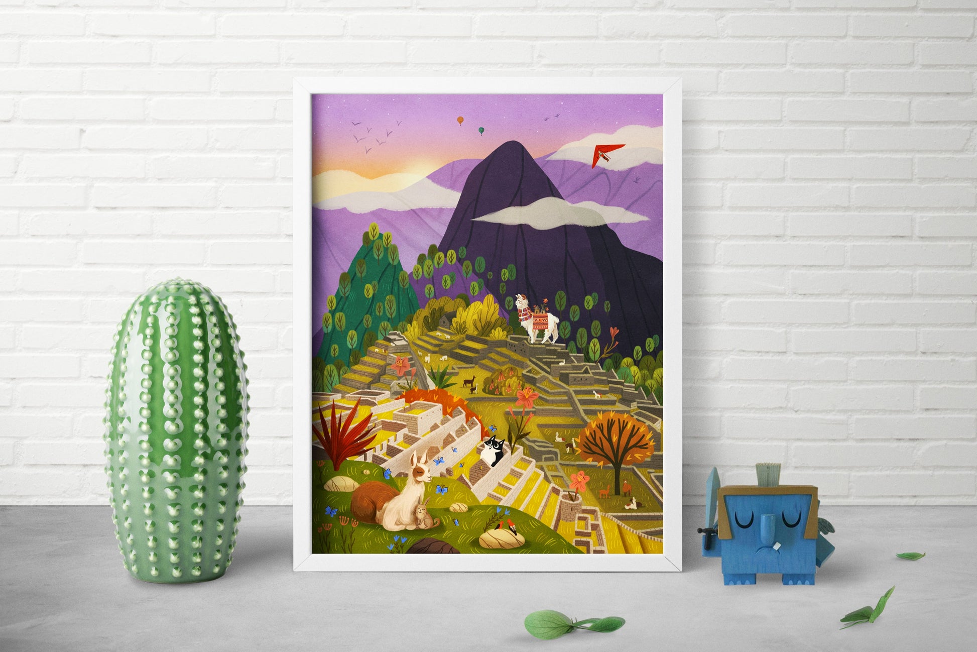 This Peru print features the marvelous mountains of Machu Picchu visited by Alistair and Purna in February 2013. Available in multiple sizes, this whimsical art print comes ready for you to frame and hang in your favorite spot.